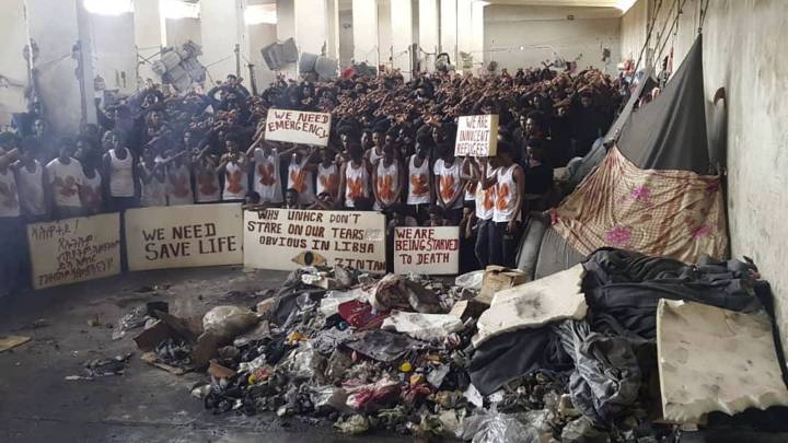 700 migrantes desamparados en un centro de detención de Libia lleno de basura, enfermedades y aguas residuales